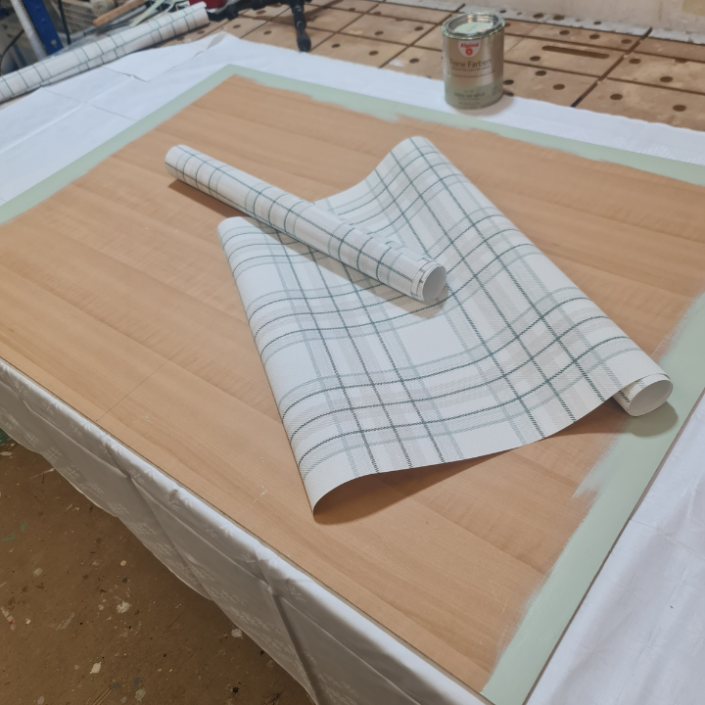 werden mit Tapete verkleidet.